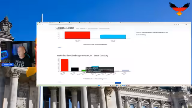 00:24:51Nach der kritischen Analyse der NRW-Wahlen gibt es auch positive Entwicklungen zu vermelden. In Oranienburg (Brandenburg) liegt der AfD-Kandidat Anja Waschkau mit 28,7 Prozent deutlich vor der SPD-Kandidatin Jennifer Colleen Feder. Der Streamer betont, dass dies ein klarer Sieg in der ersten Runde ist, auch wenn die SPD voraussichtlich in der Stichwahl stark werden wird. Er kontrastiert die Wahlkämpfe im Osten, die er als Wohnzimmerwahlkampf bezeichnet, mit dem härteren Kampf im Westen, der gegen etablierte Strukturen, Gewerkschaften und Gewalttäter antritt. Die wachsende Zustimmung für die AfD im Osten, die teilweise über 30 Prozent liegt, wird als positives Zeichen gewertet.