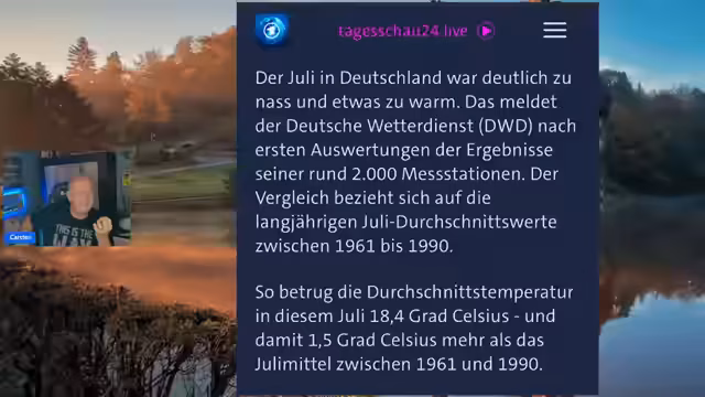 00:12:09Nach einer persönlichen Begrüßung weiterer Zuschauer wird der Tod der Biathlon-Weltmeisterin Laura Dahlmeier trauernd zur Kenntnis genommen. Im unmittelbaren Anschluss daran wendet sich der Streamer scharf gegen die Klimapolitik und die mediale Berichterstattung. Er kritisiert die Wahl des Referenzzeitraums (1961-1990) für die Klimadaten als willkürlich und manipulativ, um die Angst vor dem Klimawarnung zu schüren, und sieht darin politische Instrumentalisierung.