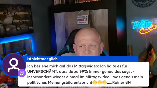 00:19:46Im Anschluss an die Einleitung spielt der Streamer sein morgendliches Video, das sich mit den aktuellen geopolitischen Ereignissen, insbesondere dem Angriff der USA und Israels auf den Iran, befasst. Er stellt die Faktenlage dar und spricht über die moralischen Dilemmata, die aus diesem Konflikt entstehen. Der Streamer betont, dass er die Handlungen der USA und Israels zwar als völkerrechtswidrig ansieht, gleichzeitig aber auch die Gefahr des politischen Islam anerkennt. Er kritisiert sowohl linke als auch rechte Kommentatoren, die seiner Meinung nach zu kurz denken oder ihn falsch interpretieren, und plädiert für eine differenzierte Betrachtung der komplexen Lage.
