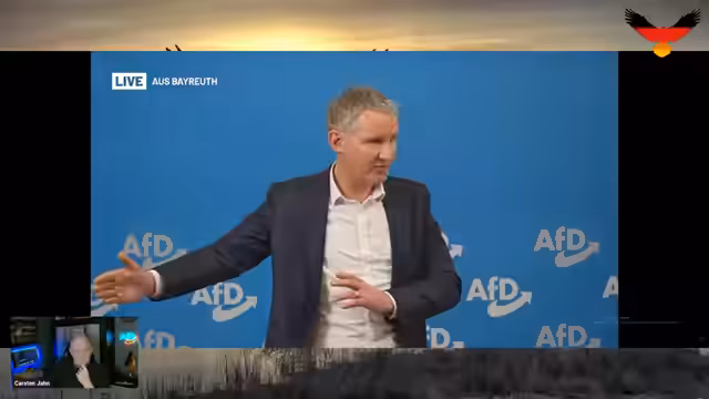 00:32:49Nach der Wiedergabe der Rede wird die starke öffentliche Reaktion darauf hervorgehoben. Sie ging viral und wurde von vielen als grandios und intellektuell hochwertig bezeichnet. Gleichzeitig wird ein unmittelbarer politischer Fall besprochen: Das Auftrittsverbot für AfD-Politiker Björn Höcke in Bayern, das vom Bayerischen Verwaltungsgerichtshof als unzulässig zurückgewiesen wurde.