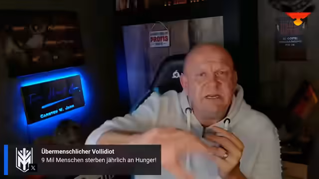 00:12:16Der Streamer kritisiert das aktuelle, bewölkte Wetter und verknüpft dies mit sarkastischen Kommentaren zur Klimapolitik. Er erwähnt das bevorstehende Einjährige seines Kanals und wechselt dann zu politischen Themen. Er zitiert Statistiken über angeblich rechtsextreme, Verschwörungstheoretiker und Putin-Troller in Deutschland und wirft der Regierung vor, Migrationspolitik durch Initiativen wie den Global Compact for Migration und die Agenda 2030 zu steuern. Er verspottet Klimawarnungen, indem er auf die Entwicklung von Dubai oder die Vorhersagen von Al Gore Bezug nimmt.