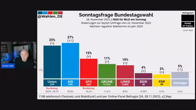 01:18:49Der Streamer spielt einen Beitrag von Ulrich Siegmund ein, dem möglichen nächsten Ministerpräsidenten Sachsen-Anhalts, der die fehlende Berichterstattung der Medien über die Ereignisse in Gießen kritisiert. Siegmund wirft der Presselandschaft vor, Bilder und Informationen zurückzuhalten, die politisch unbequem sind und nicht ins gewünschte Bild passen. Er sieht die politische Verantwortung für die Geschehnisse in Gießen bei der CDU, die seiner Meinung nach linke NGOs, die an der Organisation der Proteste beteiligt waren, über Jahre und Jahrzehnte mit Millionen von Steuergeldern gepäppelt hat. Er fordert die Zuschauer auf, solche Bilder und Videos weiterzuverbreiten, um Menschen aufzuklären, die keinen Zugang zu sozialen Medien haben und sich auf traditionelle Medien verlassen. Siegmund betont die gefährliche Entwicklung und die Notwendigkeit, das Land aufzurütteln, und verspricht, dass unter einer AfD-geführten Regierung solche Zustände undenkbar wären. Der Streamer lobt Siegmunds deutliche Ansage und ermutigt die Zuschauer, die Inhalte in sozialen Medien viral zu verbreiten, um mehr Menschen zu erreichen. Die Linken hätten der AfD mit ihren Aktionen einen Bärendienst erwiesen. Er erwähnt, dass laut Insa-Meinungstrend die AfD um 1% zugelegt hat und nun bei 27% liegt. Dies interpretiert er als Zeichen dafür, dass die Versuche, Ulrich Siegmund mit der 'Holocaust-Heuchelei' zu diskreditieren, nach hinten losgegangen sind und keine negativen Auswirkungen auf die Umfragewerte hatten, sondern im Gegenteil sogar eine positive Wirkung zeigten. Er ist optimistisch, dass auch das aktuelle Wochenende positive Auswirkungen auf die Umfragen haben wird. Der Streamer glaubt, dass Umfragen das Stimmungsbild im Land mit einer gewissen Toleranz widerspiegeln und ist erfreut, dass viele Menschen scheinbar klar denken können.