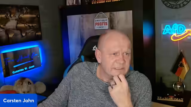 00:10:05Der Stream beginnt mit einem langsamen Aufbau, der Streamer begrüßt seine Zuschauer aus verschiedenen Regionen wie Bad Oeynhausen, Bocholt, Berlin und dem Schwarzwald. Es werden langjährige Unterstützer und neue Follower im Chat begrüßt. Der Streamer erwähnt eine benötigte Auszeit nach einem CDU-Parteitag und beschreibt die technische Plattform als problematisch, da die Zuschauerzahl nicht korrekt angezeigt wird. Er kritisiert die ARD für eine manipulative Berichterstattung über den CDU-Parteitag, bei dem Angela Merkel fälschlicherweise als anwesend gezeigt wurde, obwohl sie die Veranstaltung bereits verlassen hatte.