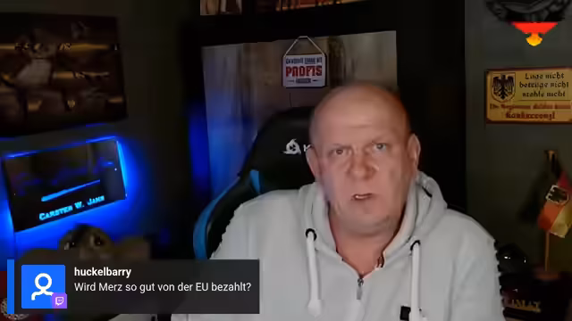 01:54:25Kritik an Bundeskanzler Merz, da er sich bei der EU für nationale Entscheidungen wie das Aus für das Verbrennerverbot oder die Energiewende entschuldigen müsse. Es wird argumentiert, dass Merz als EU-freundlicher Politiker nicht primär deutsche Interessen vertrete. Als Kernproblem wird genannt, dass die AfD einen EU-Austritt und eine reine Wirtschaftsunion befürworte, was die EU-Loyalen verhindern wollen. Die CDU würde trotz Programmüberschneidungen mit der AfD eine Zusammenarbeit blockieren.
