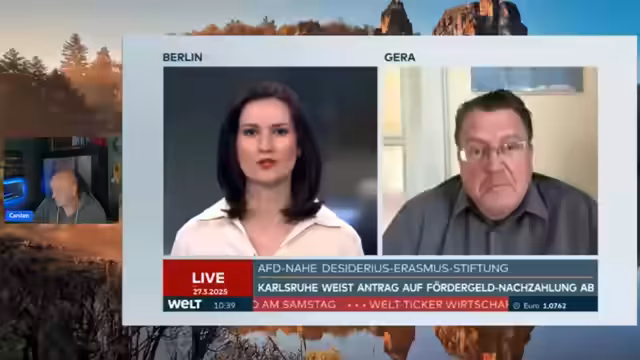 01:34:53Stefan Brandner, stellvertretender Bundessprecher der AfD, erläutert den Rechtsstreit um Fördermittel für die Desiderius Erasmus Stiftung. Gerichtlich wurde festgestellt, dass die Praxis der Altparteien, ihre Stiftungen mit Steuergeldern zu finanzieren, rechtswidrig ist. Die AfD fordert daher eine faire Behandlung ihrer Stiftung. Der Streamer kommentiert den Erfolg des Journalisten Stefan Brandner in einem Interview.