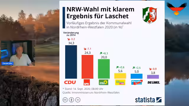 00:48:51Die Vorhersage für die Landtagswahl in Nordrhein-Westfalen bleibt ein zentraler Punkt. Die AfD wird mit Zugewinnen rechnen, während die Regierungsparteien CDU und SPD sowie die Grünen Verluste hinnehmen müssen. Die Linken könnten leicht zulegen. Ein potenzieller 'GAU' für das Establishment wäre, wenn große Städte in NRW 'blau' würden. Der Streamer ist sich sicher, dass das Wahlregime manipuliert wird und fordert die Zuschauer auf, trotzdem wählen zu gehen, denn selbst ein bescheidenes Ergebnis sei ein Zeichen des Protests und bringe die Altparteien zum 'Heulen'.