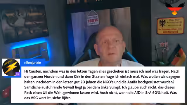 01:13:46Ein guter Start ins Wochenende wird gewünscht, verbunden mit der Ermahnung, den geraden Rücken zu behalten und sich nicht provozieren zu lassen, insbesondere in der aktuellen Debatte. Es wird angekündigt, dass nach den Kommunalwahlen weitere Provokationen zu erwarten sind. Für den nächsten Tag wird ein Stream um 18 Uhr angekündigt, sowie ein Wahl-Live am Sonntagabend, bei dem es hauptsächlich um Nordrhein-Westfalen gehen wird. Es wird die Hoffnung geäußert, dass der Herzchirurg Dr. Knapp in Remscheid ein gutes Ergebnis für die AfD erzielt. Zum Abschluss wird ein Raid zum digitalen Chronisten (DC) auf Twitch gestartet, verbunden mit Grüßen und Wünschen für einen schönen Abend.
