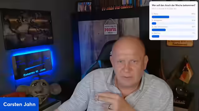 00:37:42Knapp nach Schließung der Wahllokale in Ungarn um 19:00 Uhr verbreitet sich im Stream bereits die Meldung, dass Viktor Orban die Wahl gewonnen habe. Während dies gefeiert wird, kommt es bei der offiziellen Ergebnis-Website der Stadt Schwerin zu technischen Problemen und Serverausfällen. Dies führt zu Frustration, da die Auszählung nur langsam vorankommt und die favorisierte AfD-Kandidatin Petra Federer weiterhin auf Platz drei liegt. Die Ursache für die technische Störung wird humorvoll als 'Co-finanziert von der Europäischen Union' kommentiert.
