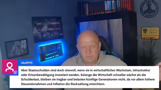 01:02:00Der Streamer kritisiert massiv den geplanten Verteidigungshaushalt von 1,5 Billionen Euro. Er vergleicht die Ausgaben der Bundeswehr (66,8 Milliarden Euro) mit denen Israels (27,5 Milliarden Euro) und stellt fest, dass Deutschland trotz der höheren Ausgaben Probleme bei der Ausrüstung der Bundeswehr hat. Er bezweifelt die Notwendigkeit der zusätzlichen Mittel und kritisiert, dass das Geld nicht effizient verwendet wird.