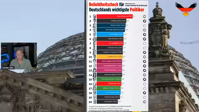 00:16:58Der Fokus wechselt auf aktuelle politische Ereignisse, insbesondere das kontrovers diskutierte Weltinterview von Alice Weidel. Der Streamer argumentiert, dass Weidels starke Reaktion und Wahrheitsfülle der Bevölkerung gefallen sei. Er stützt seine These auf aktuelle Umfragewerte, die nach dem Interview einen leichten Pluspunkt für die AfD und besonders für Weidel in einer Beliebtheitsrangliste zeigten. Er interpretiert dies als positives Zeichen für die Partei.