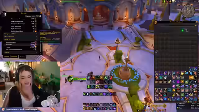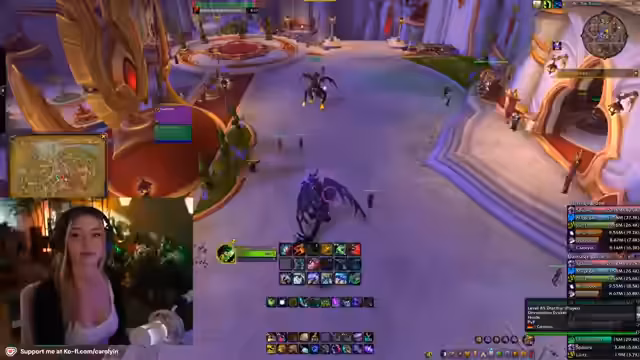 03:23:28Zwischen den BGs nutzt die Streamerin die Wartezeiten, um die Stadt Silvermoon zu erkunden und dabei ihren Lieblingsspot zu finden. Dieser Spot befindet sich hoch über der Stadt, von dem aus sie alles überblicken kann. Sie interagiert mit Chat-Followern und diskutiert über verschiedene Orte in Silvermoon, wie den Bogen in der Luft, auf den man landen kann. Die Erkundung scheint ihr eine willkommene Abwechslung vom intensiven PvP Gameplay zu bieten, ermöglicht ihr aber auch, während des Wartens auf die nächsten BGs etwas zu entdecken.