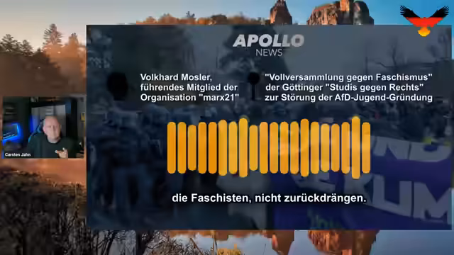 01:21:12Der Streamer berichtet ausführlich über die gewalttätigen Ausschreitungen in Gießen im Zusammenhang mit dem Parteitag der AfD. Er beschreibt, wie organisierte linksextreme Kräfte mit massivem staatlichem Aufgebot eine ganze Stadt belagerten, um den Kongress zu verhindern. Es kam zu zahlreichen Verletzungen bei Polizisten, Angriffen auf Teilnehmer und Journalisten sowie erheblichen Sachschäden. Laut dem Streamer ging der Angriff eindeutig von links aus, was eine gefährliche Entwicklung für die Demokratie darstellt.