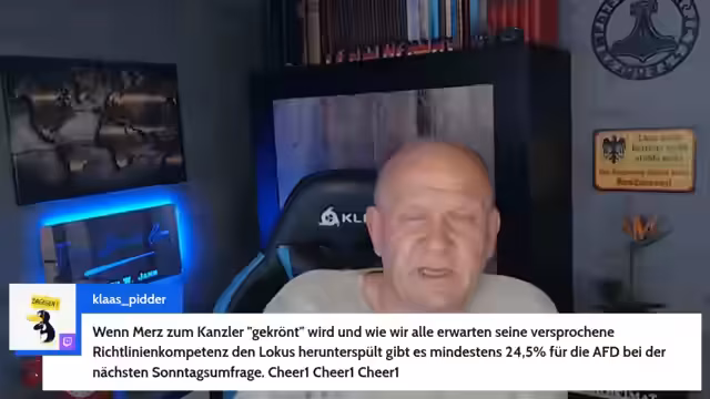 00:15:11Der Streamer äußert sich scharf kritisch zur aktuellen politischen Lage in Deutschland. Er bezeichnet die Bildung einer neuen Regierung als einen "völligen Irrsinn", der gegen den Willen eines Großteils der Bevölkerung agiert. Er kritisiert insbesondere, dass die Politik laut ihm für eine laute Minderheit gemacht wird, die von der Regierung protegiert und unterstützt wird. Auch die Kommentarfunktion zu politischen Mails wird erwähnt, wobei er bekräftigt, alle Mails zu beantworten.