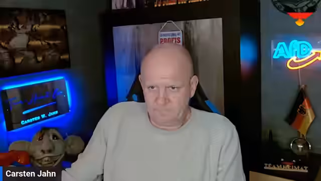 00:10:03Der Livestream beginnt mit den üblichen Willkommensgrüßen an die Zuschauer aus verschiedenen Städten wie Bottrop, Lüdenscheid und Leipzig. Nach kurzen technischen Einblendungen für die Übertragungsplattformen X und Twitch bestätigt der Streamer, dass alles einwandfrei läuft. Dabei erwähnt er humorvoll sein zunehmendes Alter und seine gelegentlichen Gedächtnislücken, was zu einem lockeren und persönlichen Einstieg in die Sendung beiträgt.