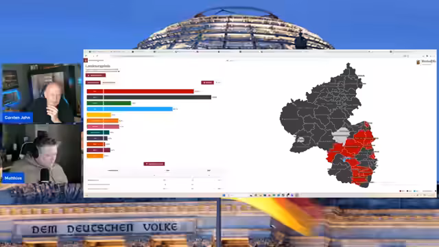 01:05:27Der Stream beginnt mit der Veröffentlichung der ersten offiziellen Hochrechnung für die Landtagswahl in Rheinland-Pfalz. Der Fokus liegt auf dem Rekordergebnis der AfD, die mit 20 Prozent abschneidet. Dies wird als symbolträchtig gewertet, da es der Partei die Einrichtung von Untersuchungsausschüssen ermöglicht. Der Streamer bewertet die AfD nicht mehr als reine Protestpartei, sondern als etablierte Kraft, die langfristig bei solchen Prozentzahlen nicht mehr ignoriert werden kann und in die Regierungsarbeit einbezogen werden muss.