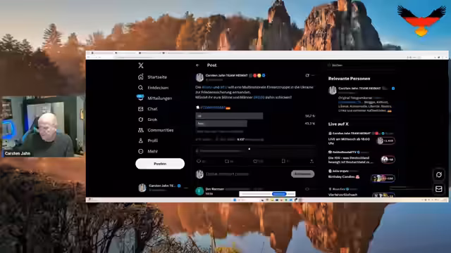 01:02:05Die EU sanktioniert pro-russische Journalisten, während deutsche Medien ungestört propagandaähnliche Inhalte verbreiten. Der Streamer geißelt die Doppelmoral: Die EU bezeichne sich als liberal-demokratisch, unterdrücke aber abweichende Meinungen. Er fordert die Abschaffung der EU als 'Lobbykonstrukt'. Ironisch verweist er auf Bauernproteste gegen EU-Politik, die ohne Wirkung bleiben. Zeitgleich wird die NATO-Debatte über Truppen in der Ukraine mit Warnungen vor neuen Konflikten verknüpft.