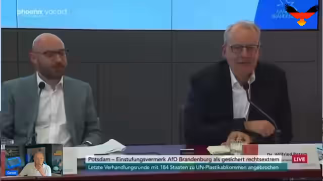 00:06:21Der Streamer zitiert die von der Landesregierung Brandenburg als rechtsextrem eingestuften Aussagen von AfD-Politikern, wie René Springer und Hans-Christoph Berndt, um die Diskrepanz zwischen der empörten Reaktion der Behörde und der politischen Aussage der Opposition aufzuzeigen. Er macht sich über die Behauptungen des Verfassungsschutzes lustig, insbesondere über die Einordnung des Bundesadlers als Symbol mit NS-Ästhetik und die daraus abgeleiteten absurditäten.