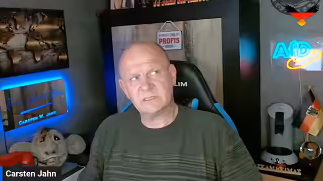 00:16:09Der Streamer präsentiert die aktuellen Wahltrends vom 10. März in Sachsen-Anhalt. Die AfD stabilisiert sich bei 39 Prozent, was er als historische Chance für eine Oppositionspartei außerhalb der Altparteien bezeichnet. Die Regierung wird vorgeworfen, die Bevölkerung zu verarschen, insbesondere bei Themen wie den Ölreserven und den Spritpreisen, die aus seiner Sicht nur Wahlkampfmanöver sind.