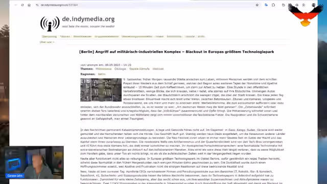 01:13:46Es wird thematisiert, dass die Tagesschau und heute um 19 Uhr das Bekennerschreiben von Linksextremen zu dem Blackout in Berlin nicht erwähnt haben. Das Bekennerschreiben von Indymedia, das den Angriff auf den militärisch-industriellen Komplex und den Blackout in Europas größtem Technologiepark thematisiert, wurde demnach bereits um 14:20 Uhr auf dem linksextremen Portal veröffentlicht. Es wird kritisiert, dass fünf bis sechs Stunden später in den Nachrichten kein Wort darüber verloren wurde, dass es sich um einen Anschlag von Linksextremen bzw. der Antifa handelte. Dies wird als Desinformation bzw. Informationslücke kritisiert, da die Bürger nicht verunsichert werden sollen. Es wird ironisch angemerkt, dass die größte Gefahr ja bekanntlich nicht von rechts komme.