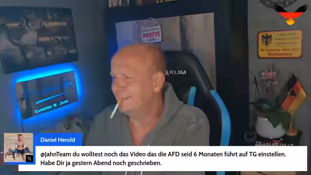 01:41:55Alice Weidel plant, sich in Peter Weidel umzubenennen, um die Aussage "Peter für Deutschland" verwenden zu können, nachdem die Aussage "Alice für Deutschland" vom Verfassungsschutz als Chiffre für "alles für Deutschland" kritisiert wurde. Es wird auf aktuelle Kriegstreiberei in den Medien hingewiesen und eine Fußballnachricht als nicht relevant für den Stream eingestuft. Abschließend wird auf einen Kommentar im Chat bezüglich eines Mordes in Charlotte eingegangen und klargestellt, dass es sich um ein Missverständnis handelte. Es wird betont, dass keine Verbindung zum Verfassungsschutz besteht und die letzte staatliche Unterstützung 1997 durch das Überbrückungsgeld erfolgte.