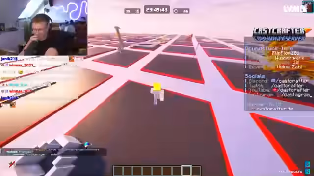 02:52:20Der Streamer äußert sich zur Teilnehmerzahl von 208 Spielern und техническим проблемам. Er zeigt sich beeindruckt von der Vielfalt der Skins und der Bauten. Einige Teilnehmer konnten sogar nachjoinen, obwohl eigentlich nicht vorgesehen. Der Streamer gibt Tipps zur Serververbindung und zur Nutzung der Bautools.