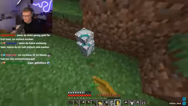 04:22:04Die Teilnehmer konzentrieren sich intensiv auf das Farmen von Holz, Eisen und anderen essentiellen Ressourcen. Die Streamer experimentieren mit verschiedenen Methoden, um Materialien effizient zu gewinnen, einschließlich der Verwendung von Zuckerrohr zur Holzproduktion und der Entdeckung nützlicher Drops wie Stonecutter und Debug Stick. Gleichzeitig wird die Bedeutung von Essen betont, um während der langen Farming-Phase energiegeladen zu bleiben und die Effizienz zu maximieren.
