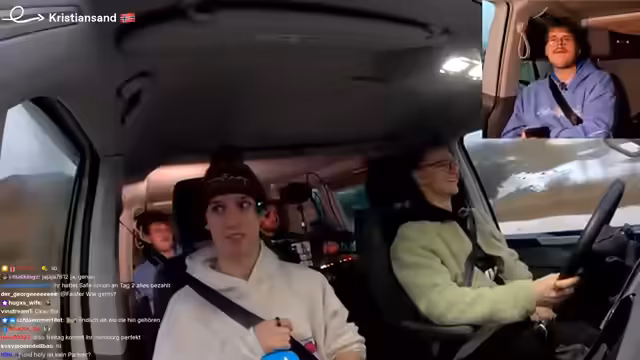 00:15:03Während der Fahrt und im Gespräch werden unterschiedliche Themen diskutiert. Dazu gehören humorvolle und abstrakte Überlegungen, ob Frauen Tierschwänse haben könnten, und eine Kontroverse über Aussagen von Joe Croft. Zudem werden kulturelle Beobachtungen gemacht, wobei die Streamer feststellen, dass Menschen in Skandinavien offener und gesprächiger als in Deutschland sind.