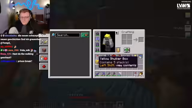 02:33:05Der Streamer kündigt einen 'Big Container Progress Day' (BCPD) auf seinem Schiff an, um die vielen leeren Container zu füllen und den Schiffsbereich weiter auszubauen. Es wird überlegt, eine Shulker-Farm zu integrieren, was jedoch aus Platzgründen schwierig ist und möglicherweise ins End oder auf eine Ölbohrplattform verlegt werden muss. Der Plan sieht vor, weitere Container zu bauen, darunter quer verlaufende Container, die eine Art 'Häuserschlucht' bilden. Zudem sollen visuelle Farmen mit Weizen, Kartoffeln und Karotten in Containern mit Glaswänden entstehen, die zwar nicht automatisch, aber ästhetisch ansprechend sein sollen. Ein Lageplan mit einer Karte, ähnlich einem zuvor erstellten Creeper-Explosionswarnschild, ist ebenfalls geplant.
