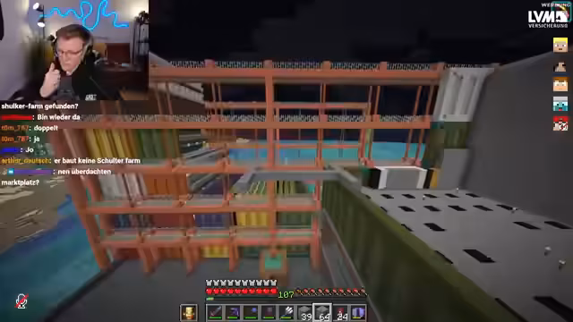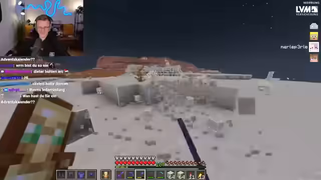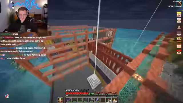 07:59:22Der Streamer und Heiko diskutieren über den Bau und die Fertigstellung verschiedener Farmen. Heiko wird gebeten, bei der Baumfarm zu helfen, was er jedoch nicht sofort umsetzen kann, da er mehrere Tage abwesend war und sich nicht auf solche Bauprojekte vorbereitet hat. Es wird auch über eine XP-Farm gesprochen, deren Standort mit einer neuen, komplexen Nummerierung beschrieben wird (Reihe 3, Slot G, Höhe 1). Der Streamer zeigt sich begeistert von der Idee, die Holzfarm fertigzustellen, während Heiko zögerlich wirkt. Die Schwierigkeiten bei der Koordination und dem Verständnis der Baufortschritte werden thematisiert, was die Komplexität der gemeinsamen Projekte unterstreicht.