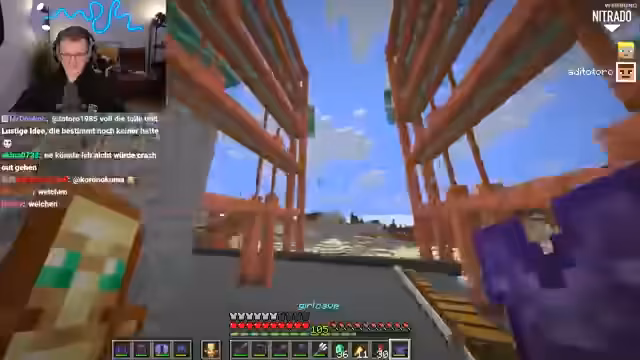07:16:55Heiko fragte nach Schalker-Farmen, was zu einer Diskussion über die Notwendigkeit einer autarken Stadt auf einem Schiff führte, die sich selbst versorgen muss. Der Streamer fragte Heiko, ob er bei einem Nether-Farm-Auftrag die Stasis auslösen würde, was Heiko bejahte. Es wurde über die Teilnahme an einem 'Force Item Battle' gesprochen, bei dem der Streamer mit Stegi den zweiten Platz belegte, während Gambo mit Dima den ersten Platz erreichte. Der Streamer äußerte sich zuversichtlich, dass er und Heiko 'rasiert' hätten und dass er sich für besser als Noreax im 'Force Item Battle' hält. Heiko wurde währenddessen verdächtigt, Nudeln zu kochen, was nicht in seine 'Lore' passe.