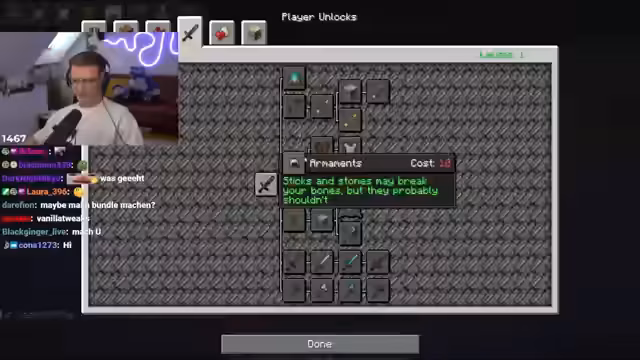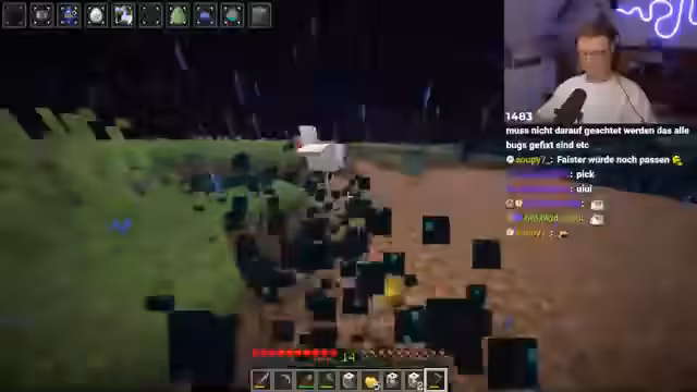 01:59:17Beim Erkunden der Minecraft-Welt stößt man auf neue Spielelemente wie den 'Dirt-Buff', der jedoch unerreichbar scheint. Es stellt sich heraus, dass das Leveln des Charakters unerwartete Konsequenzen hat, wie den zufälligen Verlust von Gegenständen aus dem Inventar, was zu Frustration führt. Trotzdem gibt es positive Überraschungen, wie Kühe, die Essen liefern. XP ist entscheidend, um weiter aufzusteigen und möglicherweise Erz schmelzen zu können. Nach einem riskanten Moment, der fast zum Tod führt, wird die Nahrungsversorgung durch das Essen von Dirt gesichert, obwohl dies nicht immer effektiv ist. Es wird spekuliert, dass anstelle von Hunger Dirt verloren geht, was eine interessante Wendung wäre. Karotten werden als neue Zutat entdeckt und eingesammelt, zusammen mit anderen Zutaten von Zombies und Spinnen, um sie später zu verwenden. Ein Bundle wäre nützlich, aber es gibt scheinbar keine Spinnen in der Nähe. Das Ziel ist es, das 'Melting'-Level zu erhöhen und Vorteile im Kampf zu erlangen. Das Essen wird zubereitet und der Streamer sucht nach Vanilla Tweaks oder einem Fullbright-Resourcepack, um die Sicht zu verbessern. Mit dem Fullbright-Pack kann man die Umgebung besser erkennen und das Inventar wird sortiert. Das Ziel ist es, Level zu sammeln, Eisen und Kupfer zu finden, um das Ei auf Exit zu bekommen und den ersten Dungeon zu verlassen. Es wird überlegt, ob die Level zwischen den Dungeons erhalten bleiben und ein Skelett droppt eine Trophäe, was den begrenzten Inventarplatz zum Problem macht.