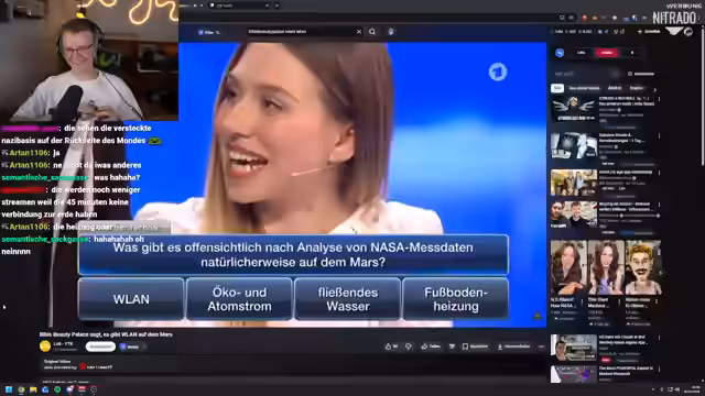 02:53:12Der Fokus des Streams wechselt zur bevorstehenden Artemis 2-Mission der NASA, bei der erstmals seit über 50 Jahren wieder Menschen den Mond umrunden werden. Der Streamer äußert seine große Spannung und hofft auf einen stabilen und qualitativ hochwertigen Live-Stream von der NASA. Er diskutiert dabei scherzhaft über die Notwendigkeit von WLAN auf dem Mond und spottet über eine angebliche Mars-Werbung, die er im Internet gefunden hat.