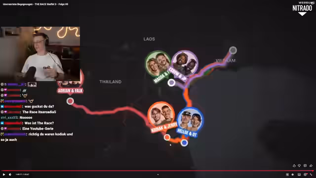 00:23:36Nach den ausufernden Themen wechselt der Streamer zum Hauptinhalt des Abends. Es beginnt die Analyse von Folge 5 des Rennens. Das Team des Streamers ist an der Grenze zwischen Vietnam und Laos gestrandet und kämpft mit Visum-Problemen. Nach stressigen Verhandlungen und dem Trampen gelingt die Einreise nach Laos, was als großer Erfolg gefeiert wird. Doch die Freude ist von kurzer Dauer.