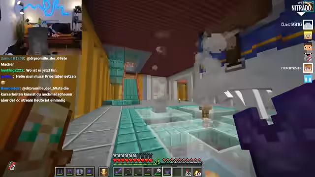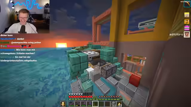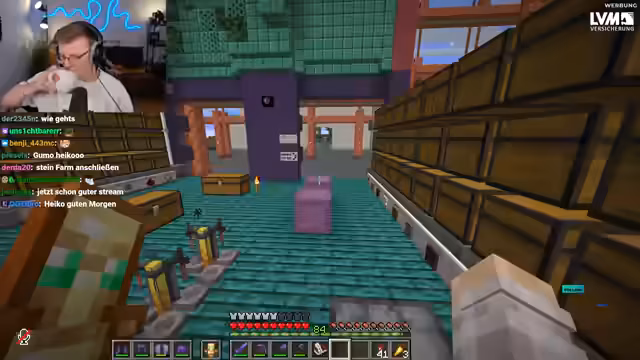 00:07:39Der Stream beginnt mit einer enthusiastischen Begrüßung der Zuschauer und guten Wünschen für das Wochenende. Nach einem kurzen Austausch über das Frühstück und die fehlende Weihnachtsstimmung, werden die ersten Schilder mit Bauvorschlägen und Wünschen der Community vorgelesen. Ein Schild von "Mäppe" schlägt den Bau einer Guardian Farm vor, um das Unterwasser-Farmen zu erleichtern. Es stellt sich heraus, dass eine Guardian Farm bereits von "Feli" gebaut wurde, was zu einer spontanen Planänderung führt. Der Streamer beschließt, sich die bereits existierende Farm anzusehen und sie gegebenenfalls für eigene Zwecke zu adaptieren. Anschließend wird ein Rundgang über das Schiff gemacht, um die Tagesaufgaben zu besprechen und den Fortschritt des Technobunkers und der Supersmelter zu begutachten. Der linke Supersmelter ist bereits fertig und funktionsfähig, während der rechte noch Dekoration benötigt. Es gibt Überlegungen, eine Lichtshow mit Beacons und Pistons zu integrieren und Redstone-Lampen zu steuern. Der allgemeine Fortschritt des Schiffes ist schwer einzuschätzen, da noch viele Container fehlen und deren genaue Bestimmung unklar ist. Es werden Ideen für weitere Farmen und Einrichtungen gesammelt, darunter eine Amadillo-Farm, eine XP-Farm, eine Essensfarm-Kantine und Villager-Trading-Container. Auch das Verschieben des Portals wird als wichtig erachtet.