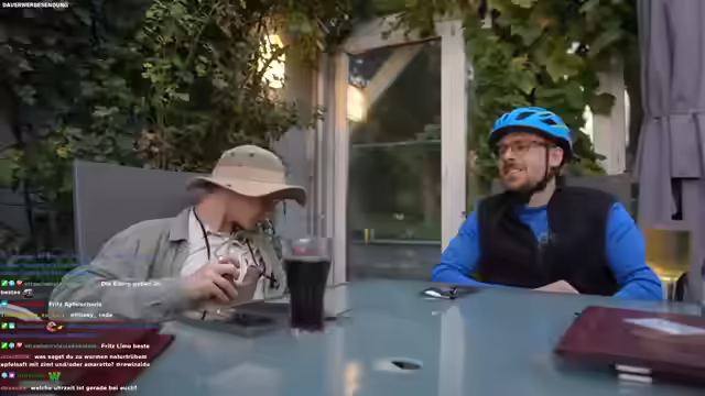 02:56:28Ein Restaurantbesucher betrachtet eine Person und schüttelt den Kopf über dessen Helm. Es wird über BDSM gescherzt. Eine Person erklärt, dass sie aufgrund einer Gehirnverletzung den Helm nicht abnehmen darf. Ein Natur-Sekt wird als Getränk präsentiert. Es wird über die Vorliebe für Apfelschorle diskutiert, insbesondere für naturtrübe Apfelschorle mit Zitrone aus der Dose. Die Idee einer eigenen Apfelplantage, auf der Subs arbeiten und in Subs bezahlen, wird gesponnen. Eine Person ist kurzzeitig verschwunden und wird zurückgerufen. Es wird überlegt, wie deutsch das Auftreten wirkt und ob man sich in Deutschland so verhalten dürfte, wie man es zuvor im Balthasar getan hat. Ein Mitarbeiter von Krügerhonig erklärt, was seinen Honig so besonders macht, nämlich dass er aus den Ausscheidungen von Katzen gewonnen wird, die Bienen fressen. Dieser Honig soll 60-mal stärker als Fentanyl sein. Es wird über die neue Droge Superfant gesprochen, die noch stärker als Fentanyl sein soll. Die Frage kommt auf, ob man in Königswinter Superfant bekommen kann.
