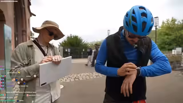 01:21:47Gelangt man auf einen Felsvorsprung, eröffnet sich ein beeindruckender Blick bis nach Köln, wo der Dom zu erkennen ist. Diesen Moment nutzt der Streamer, um die Attraktivität der Galaxy Watch zu preisen, die mit ihren Fähigkeiten wie Standorttracking, Gesundheitsüberwachung und Notfallfunktionen als extrem nützlich für Outdoor-Aktivitäten dargestellt wird. Die Diskussion dreht sich anschließend intensiv um die Nutzung der Zahnradbahn („Stinkebahn“), da der Aufstieg als sehr anstrengend empfunden wird. Die Kosten von 10 Euro für die Fahrt werden als „heftiger Scam“ und „geisteskrank“ empfunden, was zu einem humorvollen Streit darüber führt, wer die Fahrkosten übernimmt.