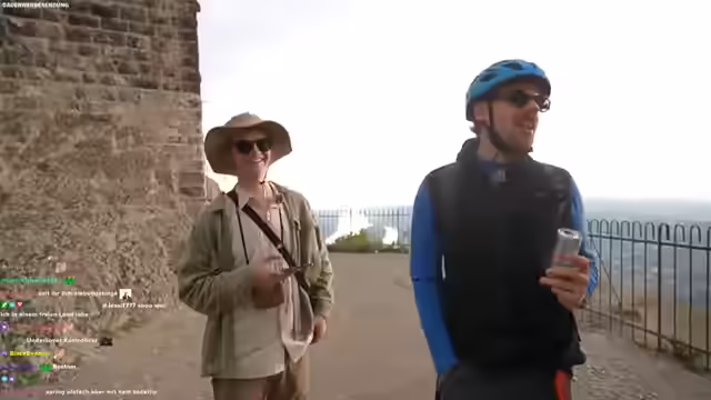 01:46:11Es wird festgestellt, dass die letzte Bahn doch erst um 18:45 Uhr fährt, was die Gruppe beruhigt. Es wird überlegt, wie man zur Ruine hochkommt. Es wird beschlossen, die letzte Bahn um 19:15 Uhr zu nehmen. Es wird ironisch kommentiert, dass man in Diebstahl begehen könnte, um Getränke zu besorgen. Es wird zur Stinkeburg hochgegangen, trotz Warnschildern vor Lebensgefahr und giftigen Feldnattern. Es wird erwähnt, dass ein Mitglied der Gruppe dort Hausverbot hat. Es wird überlegt, warum das so ist. Es wird erzählt, dass das Mitglied Feuerwerkskörper von dort oben auf Bad Homburg hat starten lassen. Es wird gehofft, dass es regnet, damit die Kamera eines Mitglieds kaputt geht. Es wird festgestellt, dass die Ruine kaputt ist und überlegt, wer das gemacht hat. Es wird dem Hund Futter gegeben. Es wird beschlossen, die Bahn um Viertel nach sechs runterzunehmen. Ein Mitglied der Gruppe möchte gerne runterlaufen. Es wird über die verbrannten Kalorien gesprochen und Brawl Stars auf einem Tablet gespielt.