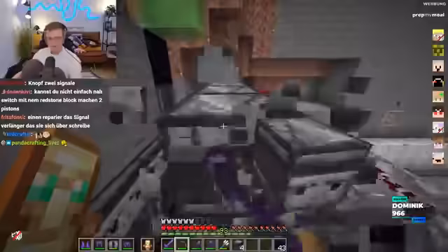 05:31:13Der Streamer wendet sich technischen Herausforderungen im Spiel zu und bittet die Zuschauer um kollektive Redstone-Brainpower, um eine komplexe Schaltung für eine XXL Flying Door zu realisieren. Ziel ist es, mehrere Pistons gleichzeitig abzufeuern, ohne die Begrenzung von 15 Blöcken für Redstone-Signale zu überschreiten. Es werden verschiedene Lösungsansätze diskutiert, darunter die Aktivierung von rechts und links, die Verwendung von Observer Chains und Noteblocks sowie die Implementierung von Copper Vibe für präzise Impulse. Die Herausforderung besteht darin, das richtige Delay zu finden, um Fehlfunktionen zu vermeiden, die die gesamte Konstruktion zerstören könnten. Nach intensiver Planung und Fehlerbehebung wird die größte Tür, die jemals in Crafted Deck gebaut wurde, erfolgreich getestet und ihre Funktionalität bewiesen, was große Begeisterung hervorruft.