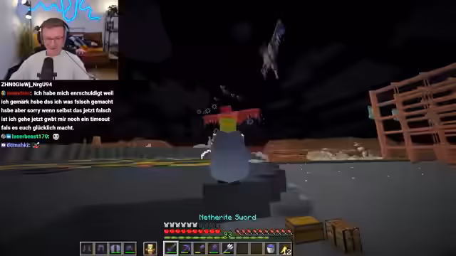 08:26:49Ein alter Trick aus Craft Attack 10, bei dem man jemanden auffordert, STRG gedrückt zu halten und zu laufen, um ihn vom Server zu werfen, wird erwähnt. Der Streamer gibt an, dass er heute bereits drei Leute damit vom Server geholt hat. Es wird auch über die ständigen Updates des Modpacks gesprochen, wobei ein Gesprächspartner erwähnt, dass er innerhalb kurzer Zeit von Version 16 auf 18 umsteigen musste. Die Größe der Base des Streamers wird durch den „Glow“-Effekt deutlich, der zeigt, wie weit er sich darin bewegt. Es wird auch ein Problem mit kaputten Elytra-Boostern angesprochen, die nur noch zwei Blöcke hoch fliegen.