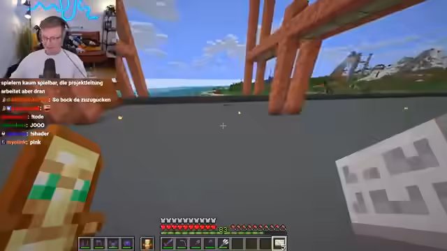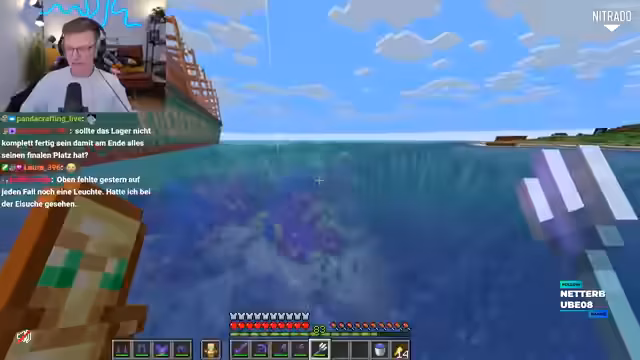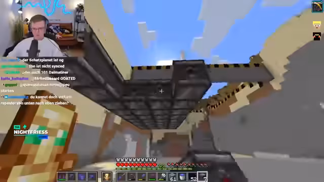08:42:24Der Streamer präsentiert sein beeindruckendes Containerschiff-Projekt, das als Hauptbasis dient und eine Stadt auf dem Schiff beherbergen soll. Er erklärt, dass die Container, die er letztes Jahr als Starterbase in Craftedict 12 nutzte, nun hierher verschifft wurden, um eine kohärente Storyline zu schaffen. Überall auf dem Schiff sind Farmen und Lager geplant. Ein besonderes Highlight ist der Elytra Launcher, eine komplexe Konstruktion, die Breezes aus einer Tri-Chamber nutzt, um Windcharges zu sammeln und Spieler in die Luft zu katapultieren, was einen sofortigen Flug ermöglicht. Während der Vorstellung offenbart der Streamer, dass er eine Rot-Grün-Schwäche hat, was zu einer interessanten Diskussion über die Farbwahrnehmung von Kupferblöcken führt. Er beschreibt die Farbe als „trist, langweilig“ und eher in Richtung Grau gehend, was die spezifische Darstellung von Farben in Minecraft für ihn besonders macht.