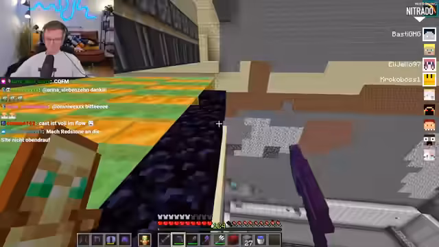 04:04:06Die sofortige Konstruktion der sogenannten 'Big Baba Bubu-Tür' wird als Hauptaufgabe festgelegt. Marcel hat bereits eine große Menge Observer gefarmt, was ein entscheidender Fortschritt für das Projekt ist. Während des Baus kommt es zu verschiedenen Spielerinteraktionen: Eine Spielerin, Merle, erscheint und es kommt zu einem humorvollen Austausch über ihren Spawn-Punkt und ihre Anwesenheit in der Basis. Es wird über das Dragon Egg gesprochen, das der Streamer besitzt und das ihn auf der Karte sichtbar macht, was zu Überlegungen führt, wie man es stehlen könnte. Später wird Merle beschuldigt, einen Schlüssel gestohlen zu haben, was zu weiteren humorvollen Dialogen führt. Ein Spieler namens Feister stirbt und seine Gegenstände müssen gerettet werden, was zu einer kurzzeitigen Unterbrechung führt. Diese Interaktionen lockern die Bauarbeiten auf und zeigen die dynamische Natur des Live-Streams.