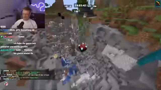 03:43:29Zu einem Überraschungseinsatz kommt der Spieler Heiko dazu. Der Streamer schildert ihm eine Herausforderung, bei der sie in einer Minecraft-Welt mit Ultra-Hardcore-Regeln und zufälligen Monstern in Chunks kämpfen müssen. Das Ziel ist es, gemeinsam die Chunks zu säubern. Während der Vorbereitung und der ersten Tests treten einige technische Unannehmlichkeiten auf, aber die Stimmung bleibt enthusiastisch und gespannt auf das anstehende Event.