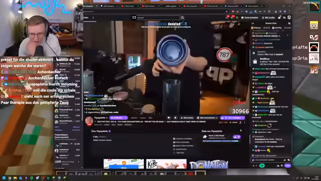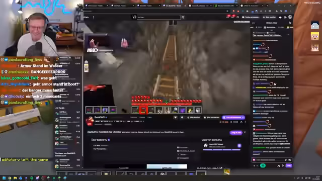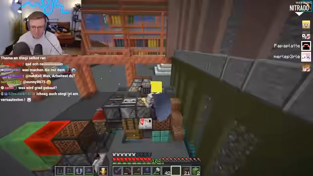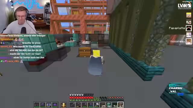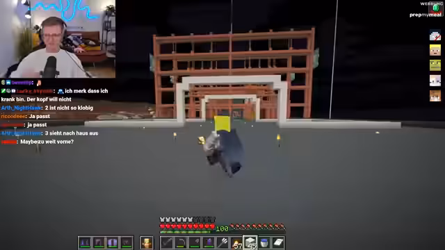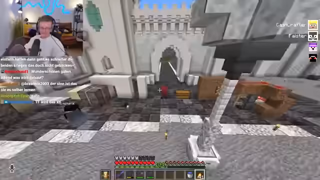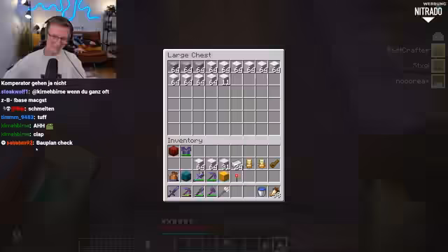 06:52:20Ein Streamer steckt in einem moralischen Konflikt. Ihm wurden vor einiger Zeit zehn Stacks Quarz-Blöcke gestohlen. Um seinen eigenen Bauplan umzusetzen, hat er in die Kiste des vermeintlichen Diebes eingesehen und sich die exakt gleiche Menge Quarz zurückgeholt, wobei er ein süßes Emote-Bild hinterlassen hat. Nun zweifelt er an der Moral seiner Handlung und bittet den Chat um Ratschläge, ob er die Ressourcen behalten oder mit dem Diebesopfer darüber reden sollte.