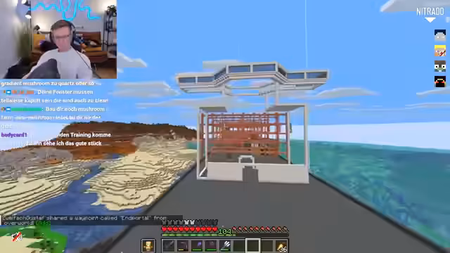 04:29:06Der Fokus liegt auf dem Bau der Schiffskommandobrücke, die nicht hinten, sondern vorne am Schiff positioniert werden soll. Die Brücke soll aus Quarzblöcken bestehen und eine verwitterte Optik erhalten. Außerdem werden Custom-3D-Modelle aus Bastis Base für die Innenausstattung der Brücke, wie Monitore und Tastaturen, ins Auge gefasst. Zudem sollen massive Mengen an Quarz durch Handel mit Villagern beschafft werden.