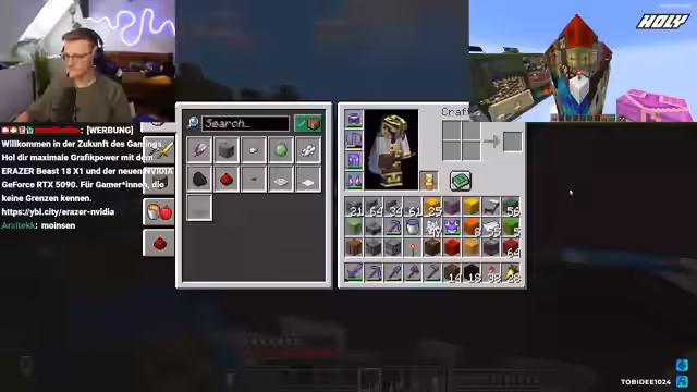 01:28:28Der Streamer sammelt verschiedene Materialien für seine Base, darunter Ketten, Stein, Gras, Lodestone, Beehive, Honeycomb-Block und Oak Tree. Er erwähnt, dass er bestimmte Blöcke wie Sapling und Bonemeal benötigt und seine Vorräte überprüft. Dabei stolpert er über technische Probleme wie das Ausfallen von Stream Elements, was dazu führt, dass plötzlich Subs angezeigt werden, die eigentlich schon länger da waren. Trotz der Herausforderungen bleibt er konzentriert auf das Sammeln der notwendigen Materialien.