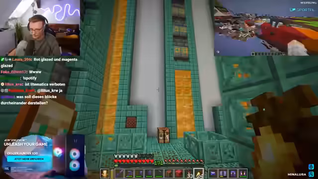 02:48:43In den letzten Schritten zur Fertigstellung der Base bemerkt der Streamer diverse Fehler, die behoben werden müssen. Er stellt fest, dass ihm Blöcke wie Stonecutter, Crying Obby und Dark Prismarin fehlen oder falsch platziert sind. Gleichzeitig arbeitet er daran, die letzten Details wie die Platzierung von Lightblocks, Oak Slabs und Mud zu optimieren. Trotz der Frustration über die vielen kleinen Probleme bleibt er motiviert und konzentriert darauf, die Base in einem akzeptablen Zustand zu beenden.