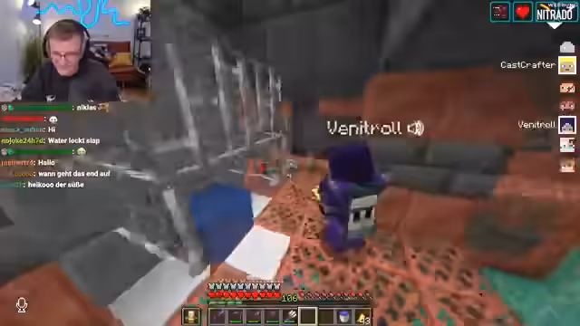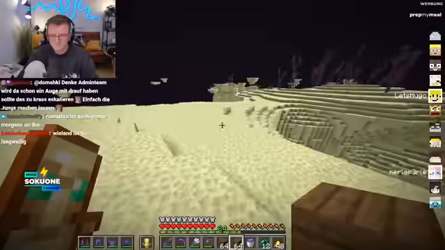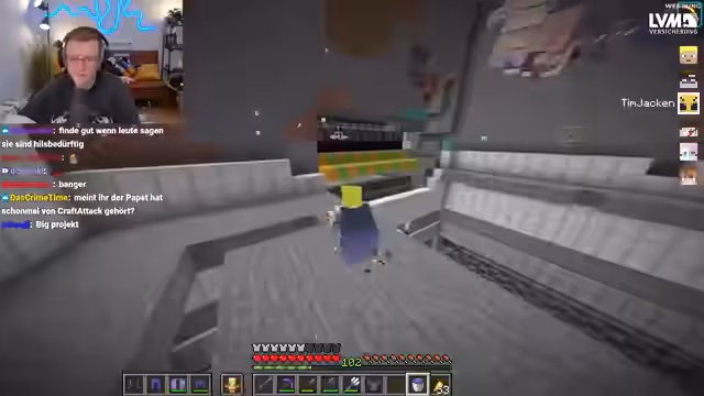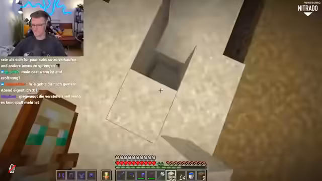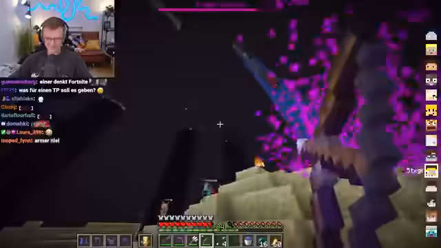 14:43:33Nachdem die Streamer die Trial Chamber erkundet haben, stoßen sie auf massive technische Probleme. Der Minecraft-Server scheint nicht erreichbar zu sein, was den Streamer außerordentlich frustriert. Nach der Rückkehr ins Spiel kommt es zu einem hitzigen PvP-Duell, bei dem der Streamer seine Wut über die Niederlage auf den anderen Spieler ablädt und von Muskelzuckungen spricht.