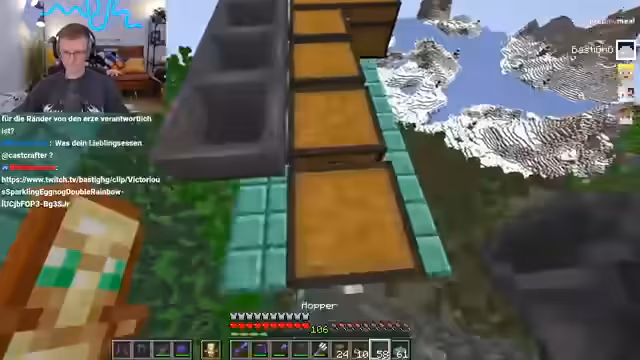 12:26:15Der Streamer berichtet von einem unerwarteten Snackfieber, das ihn befallen hat, obwohl er sich für den Start von Craft Attack mit einer großen Auswahl an Snacks versorgt hatte. Er erwähnt, dass bisher nur Pommes gegessen wurden, der Rest der Vorräte ist noch intakt. Gleichzeitig wird mit ansteigender Begeisterung der Bau eines riesigen Projekts bekannt gegeben, das als 'Monster' und 'geiles Teil' bezeichnet wird, wobei die Hälfte bereits fertig ist.
