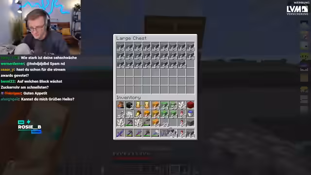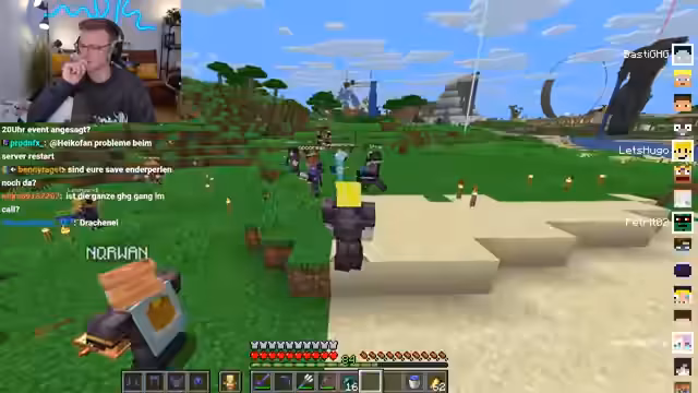 11:15:42Die Suche nach Elytra, zum Beispiel für Heiko, steht im Fokus. Nachdem einige Tode im PvP-Geschehen eingetreten sind, insbesondere mit Hugo, der andere Spieler angegriffen hat, gibt es eine große Menge an Elytra gefunden. Die Stimmung ist sowohl aufgeregt als auch angespannt durch die ständigen PvP-Zusammenstöße.