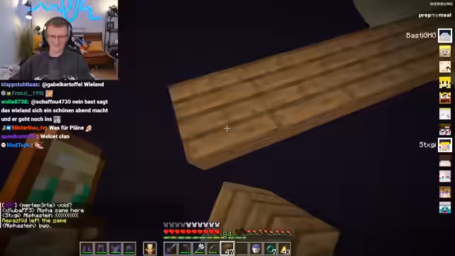 13:45:36Es werden verschiedene Tricks und Tricks im Spiel geteilt. So funktioniert die Spawn-Elytra mit Raketen, und der Happy Ghast kann im Endeffekt wieder ausgebrütet werden. Der Streamer und Heiko tauschen sich über die gestalterischen Pläne für ihre Schiffe aus. Heiko plant eine Storyline, die auf einer Apokalypse und einer autarken Stadt auf einem Schiff basiert.